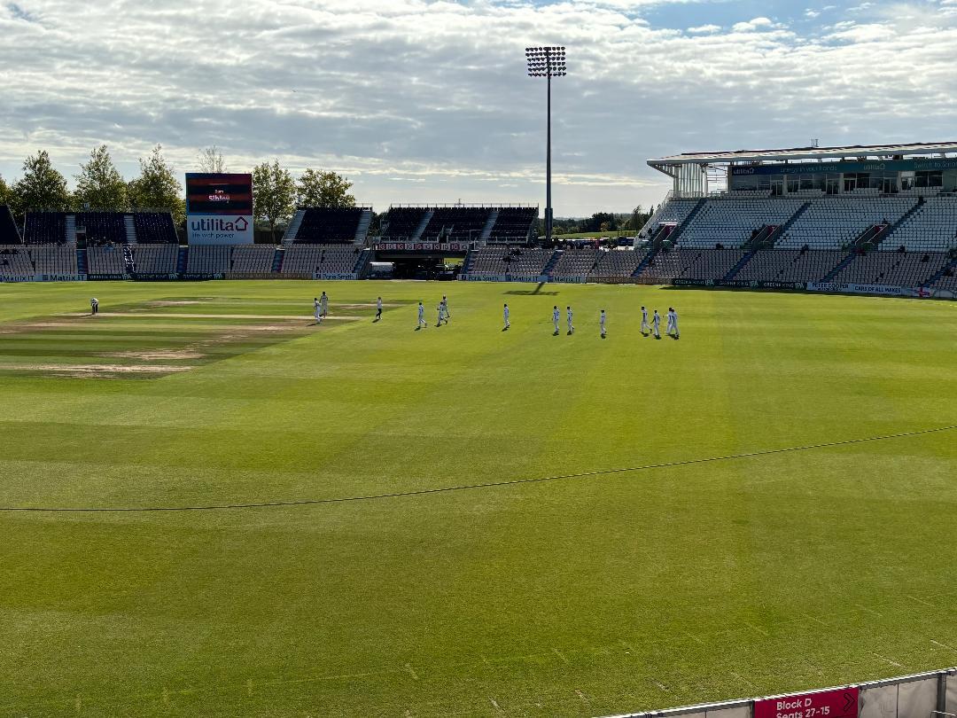 There was an end of season feel to the weather at the Utilita Bowl on the opening day of Hampshire's crunch clash with Surrey.